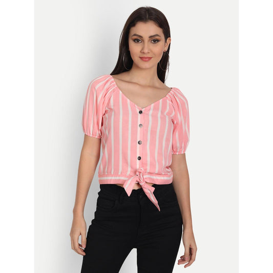 Rayon Light Pink Vertical Stripe Print Half Sleeve Top