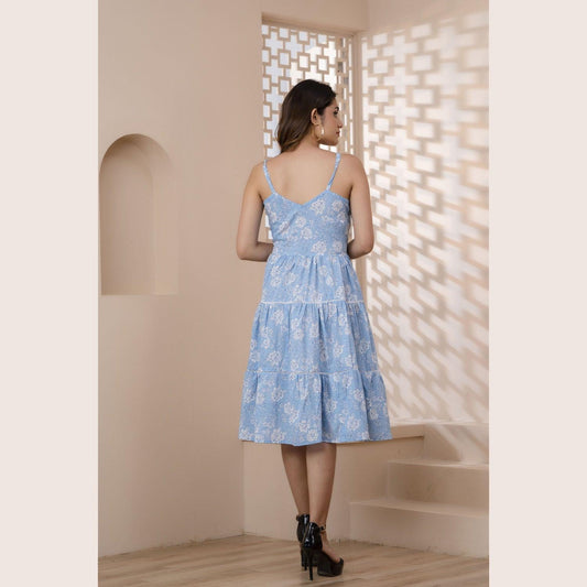 Light Blue Leheriya Print Cotton Kaftan Dress (SHKUP1229)