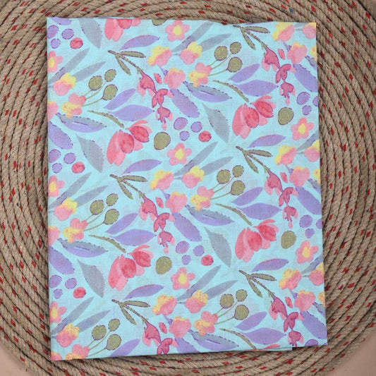 Floral Print Pure Cotton Light Blue Unstitched Suit With Cotton Dupatta (SHKS1134)