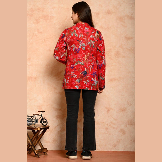 Women's Cotton Floral Print Quilted Jacket - SHKL1014