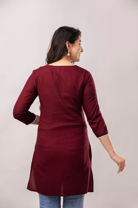 Women Maroon & White Chawal Taka Embroidered Viscose Rayon Straight Kurti