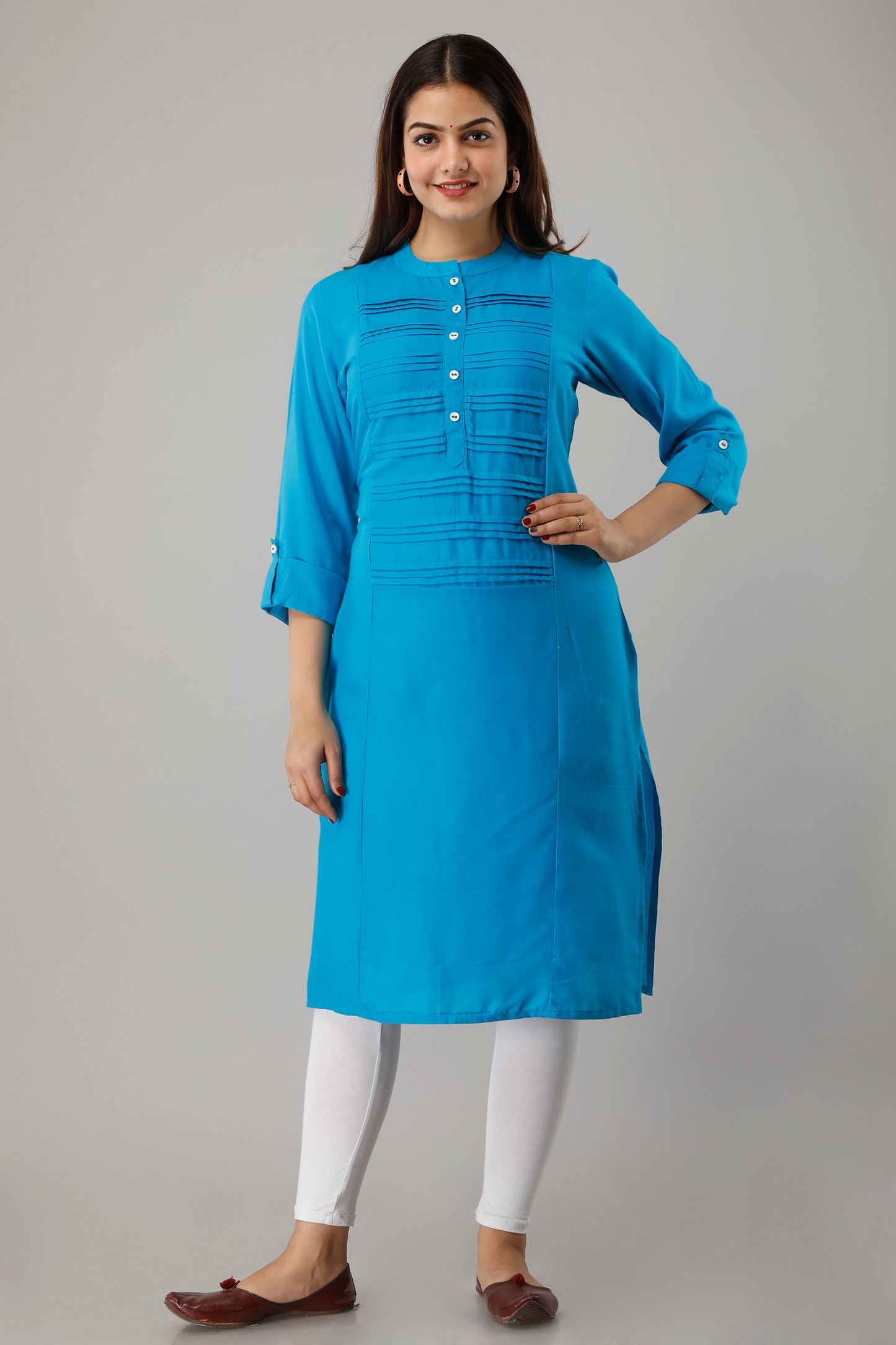 Aqua Blue Cotton Ethnic Print Smocked Top