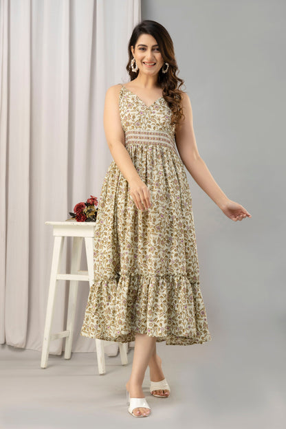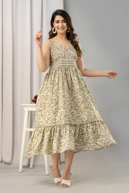 Turn heads this season in this effortlessly stylish dress by FrionKandy. Team this floral beige piece with a pair of heels or gladiators and a statement sling bag for a perfect brunch look.