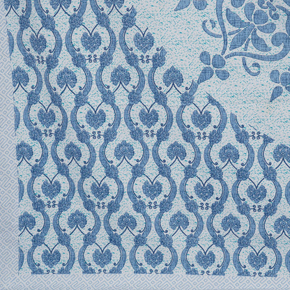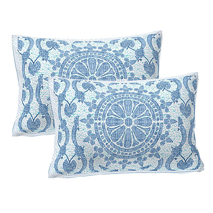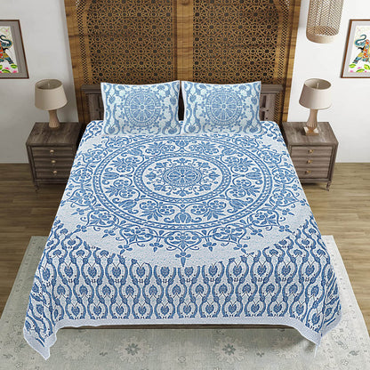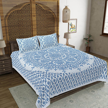 Blue Floral Print 240 TC Cotton Double Bed Sheet With 2 Pillow Covers (SHKV1040)