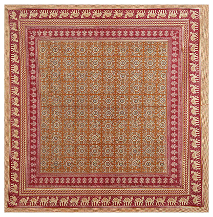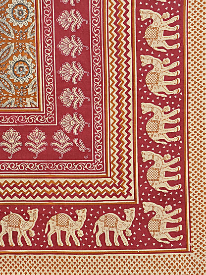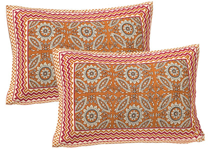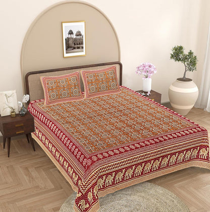 Brown Ethnic Motifs 240 TC Cotton 1 Super King Bedsheet with 2 Pillow Covers (SHKV1090)