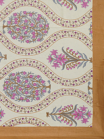Brown & Pink Floral 240 TC Cotton 1 King Bedsheet with 2 Pillow Covers (ADB1487)