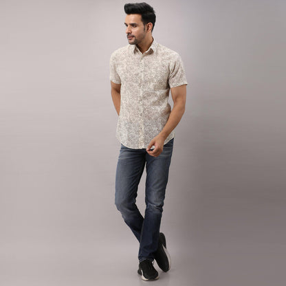 Cotton Printed Casual Beige Regular Shirt For Men
