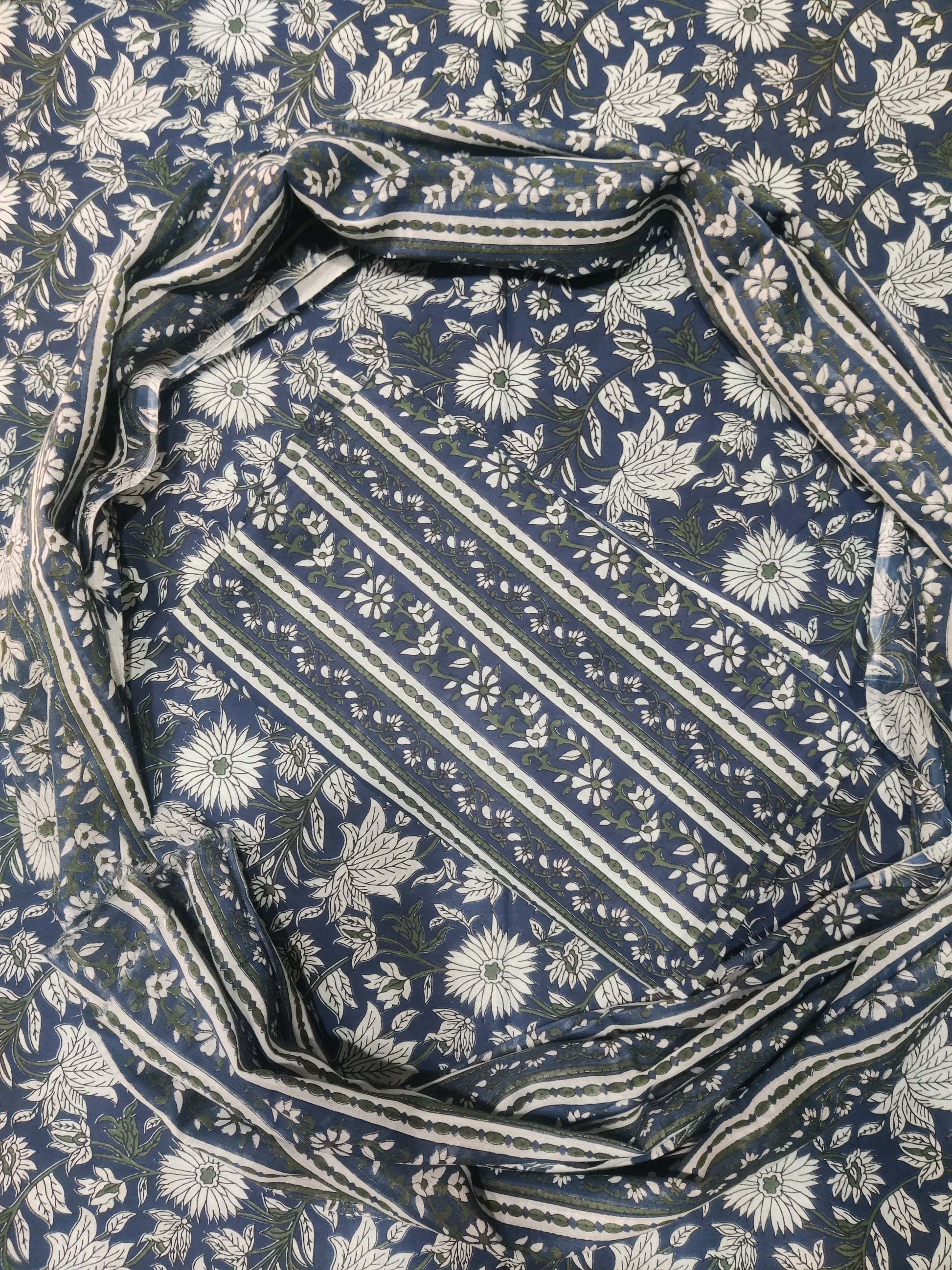 Blue And Green Printed Pure Cotton Unstitched Dress Material (SHKS1168)