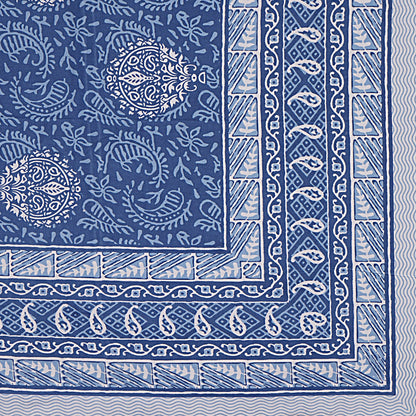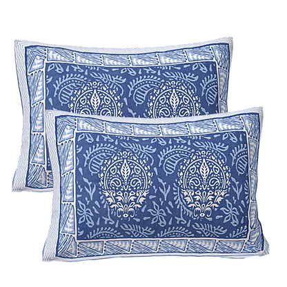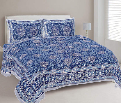 Denim Blue Ethnic Printed Double Bedsheet With 2 Pillow Covers (ADB1469)