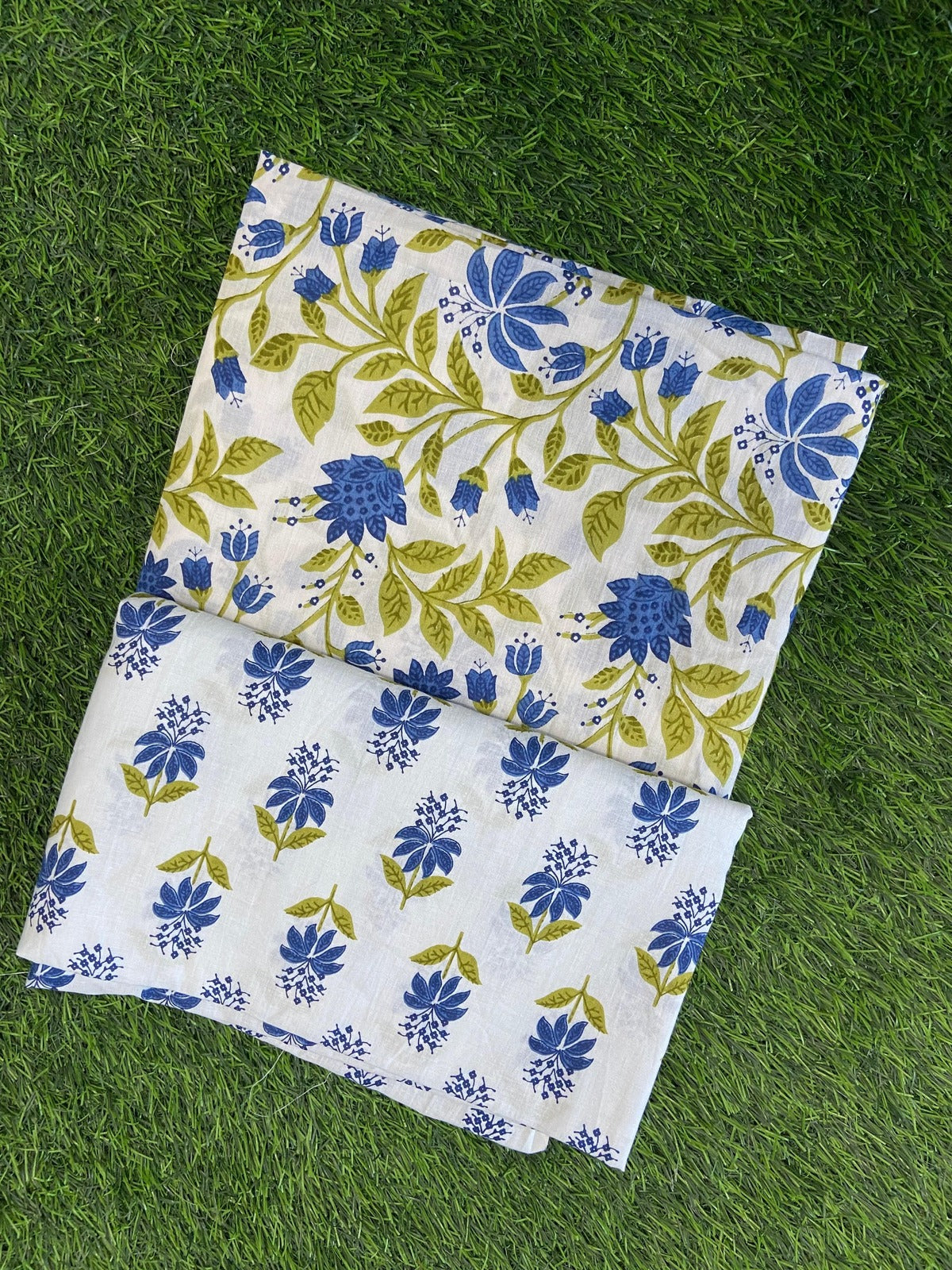 Green & Blue Floral Printed Pure Cotton Top and Bottom Fabric (SHKSS1017)