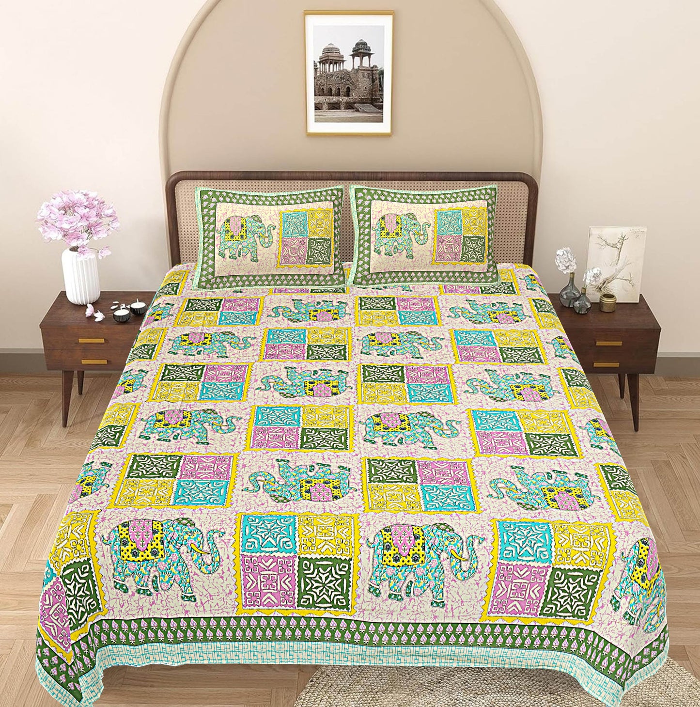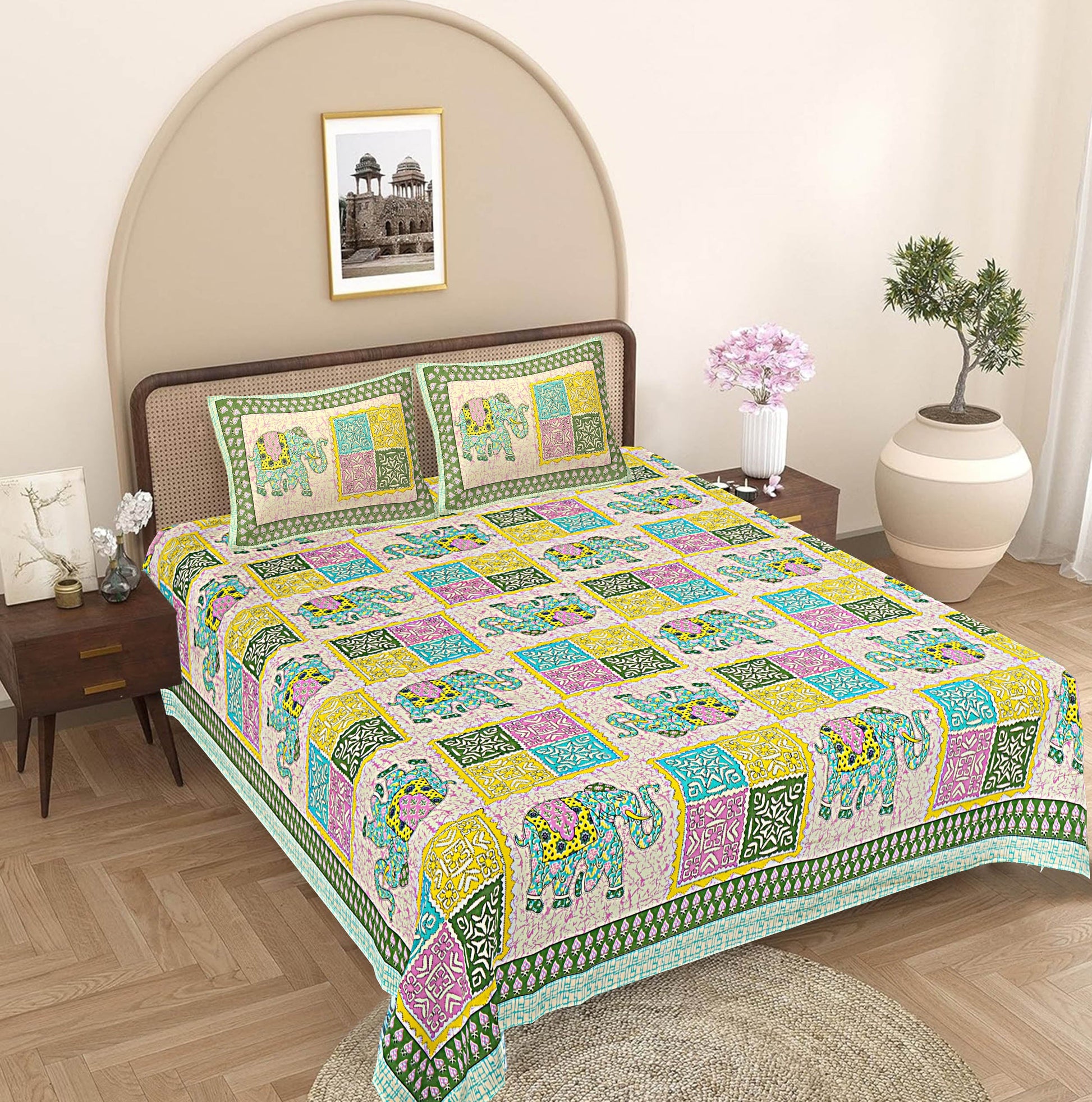 Drape your bed with our amazing range of bed sheets that is sure to lend an amazing look to your bedroom with Jaipuri King Size Bedsheet with Pillow Covers. The exquisite range of double bed sheet with two pillow covers in lovely colors and fascinating designs will instantly lift up your mood.