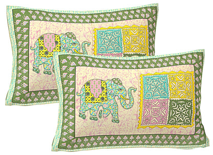 Green Ethnic Motifs 240 TC Cotton 1 King Bedsheet with 2 Pillow Covers (ADB1478)