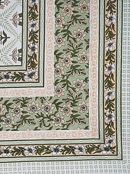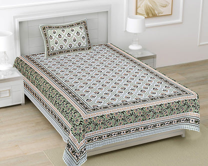 Green Floral 180 TC Cotton Single Bedsheet with 1 Pillow Cover (BSB1091)