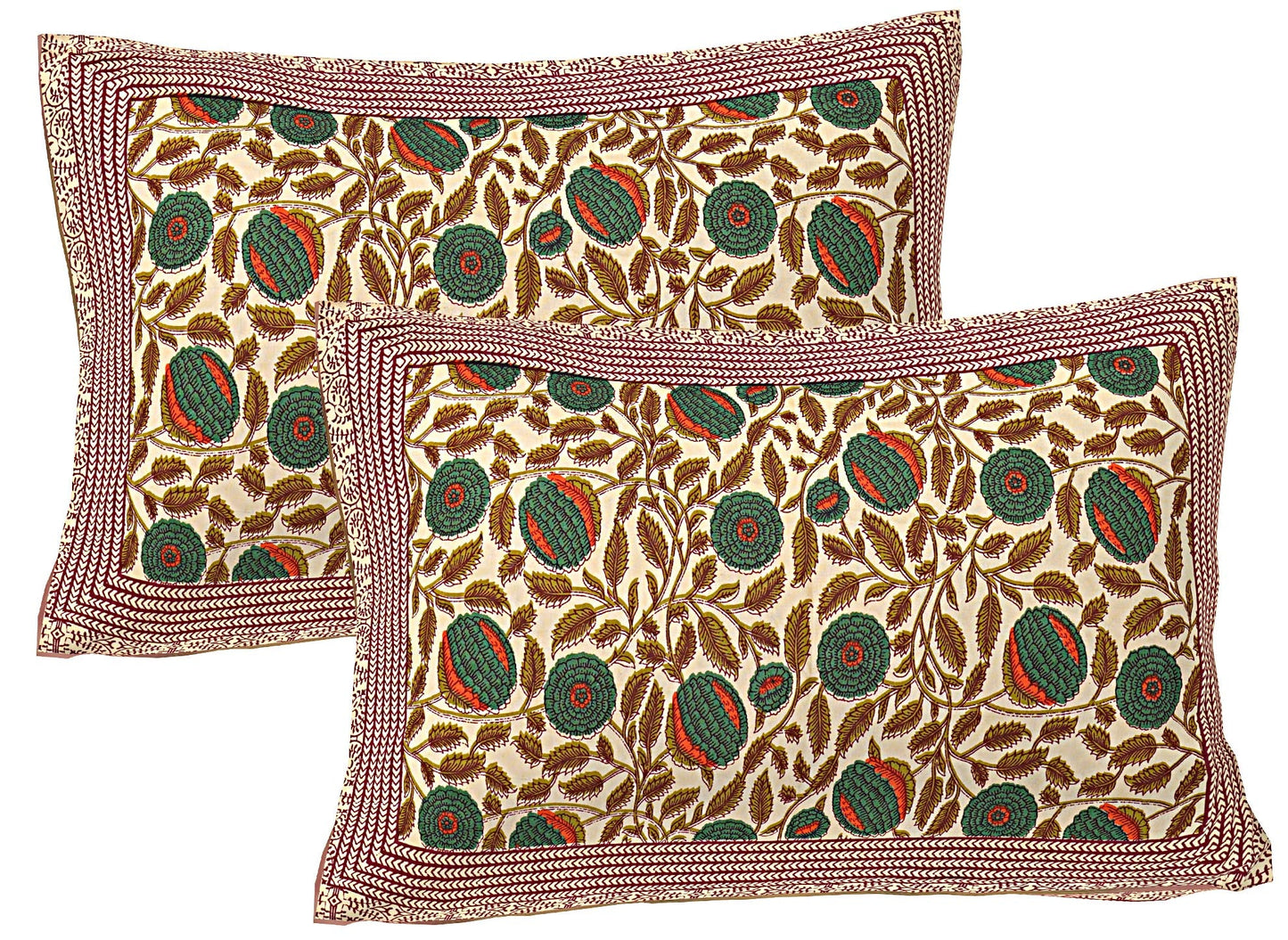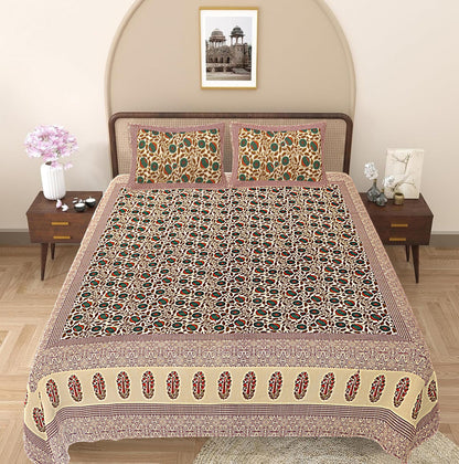 Green Floral 240 TC Cotton 1 Super King Bedsheet with 2 Pillow Covers (SHKV1108)