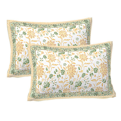 Green Floral Print 240 TC Cotton Double Bed Sheet With 2 Pillow Covers (SHKV1034)
