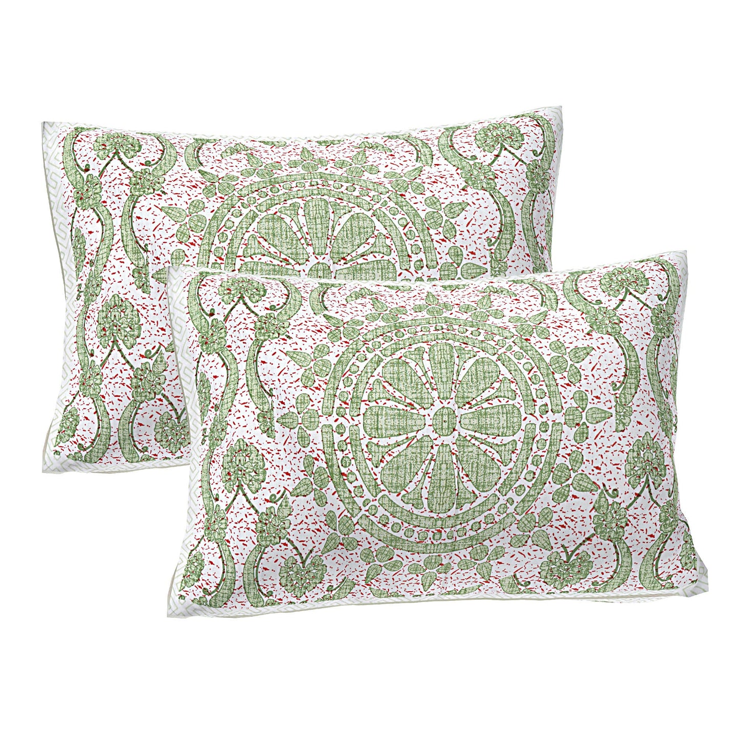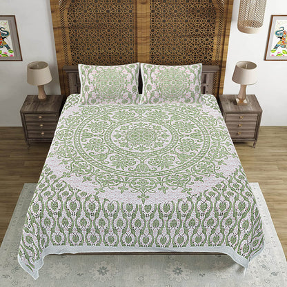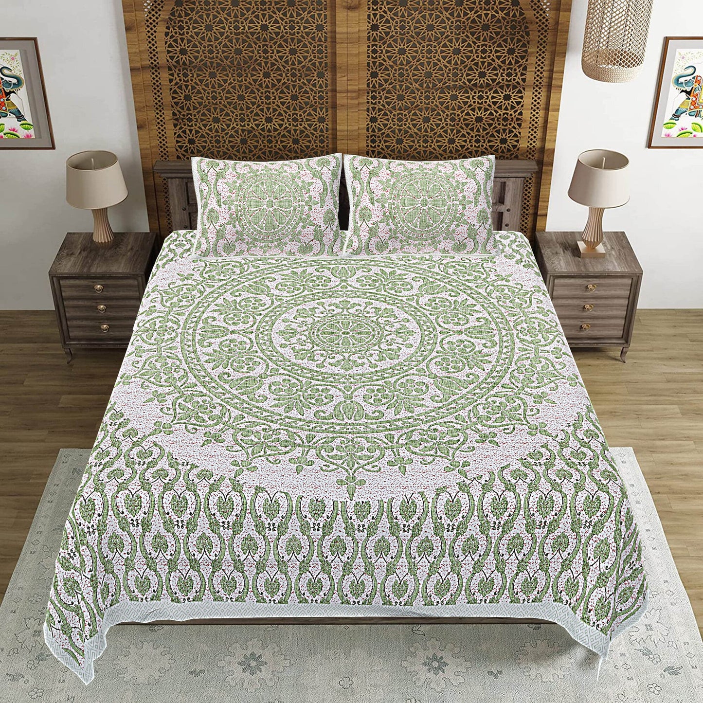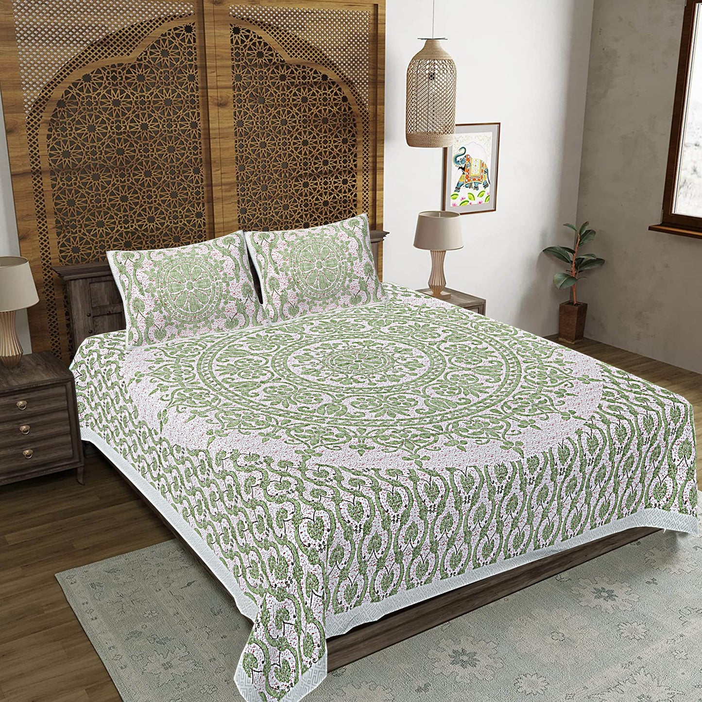 Green Floral Print 240 TC Cotton Double Bed Sheet With 2 Pillow Covers (SHKV1042)