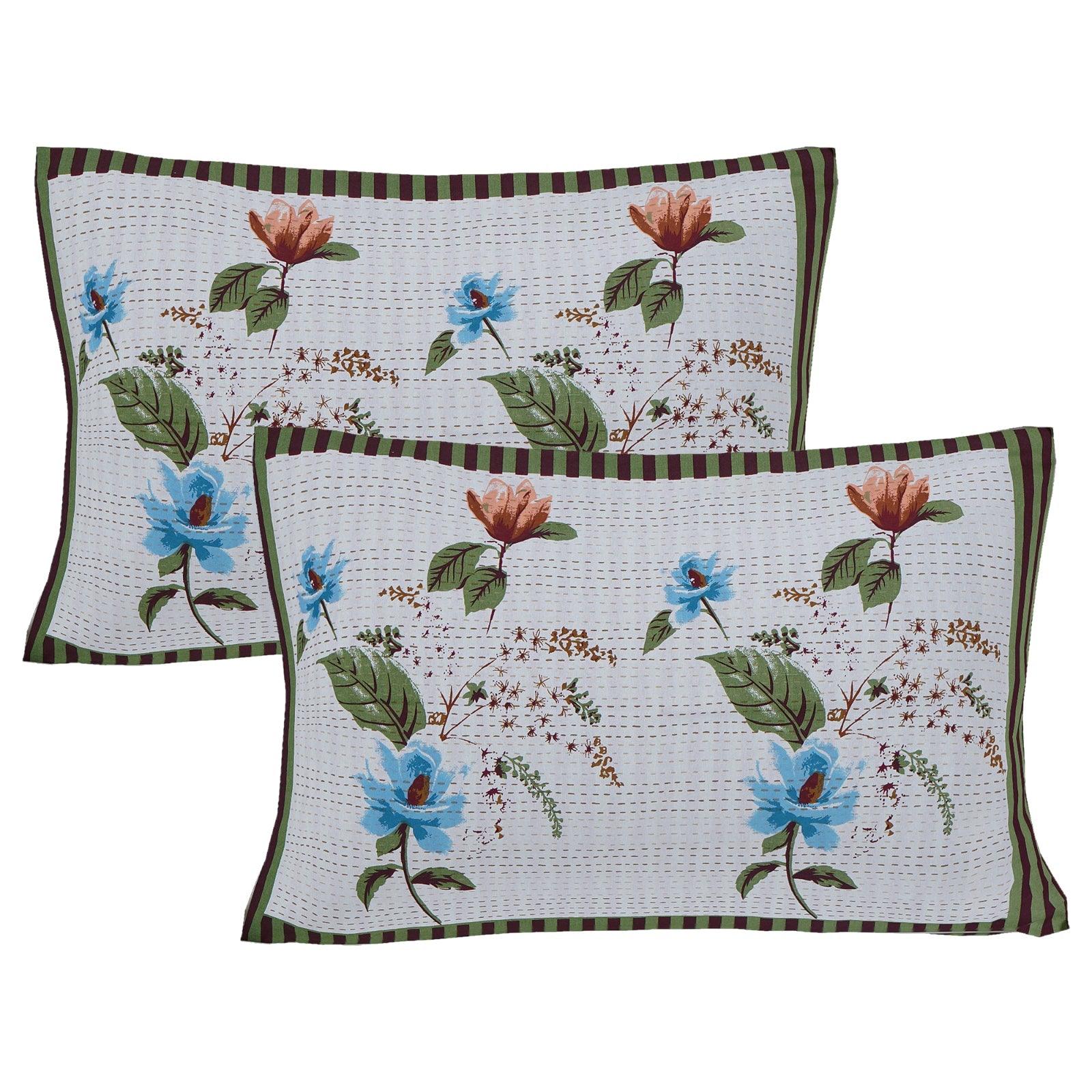 Green Majestic Floral Print 240 TC Cotton Double Bed Sheet With 2 Pillow Covers (SHKV1025)