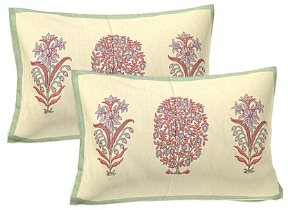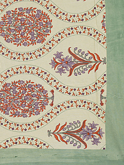 Green & Red Floral 240 TC Cotton 1 King Bedsheet with 2 Pillow Covers (ADB1485)