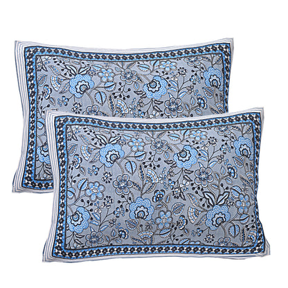 Grey Floral Printed Double Bedsheet With 2 Pillow Covers (ADB1474)