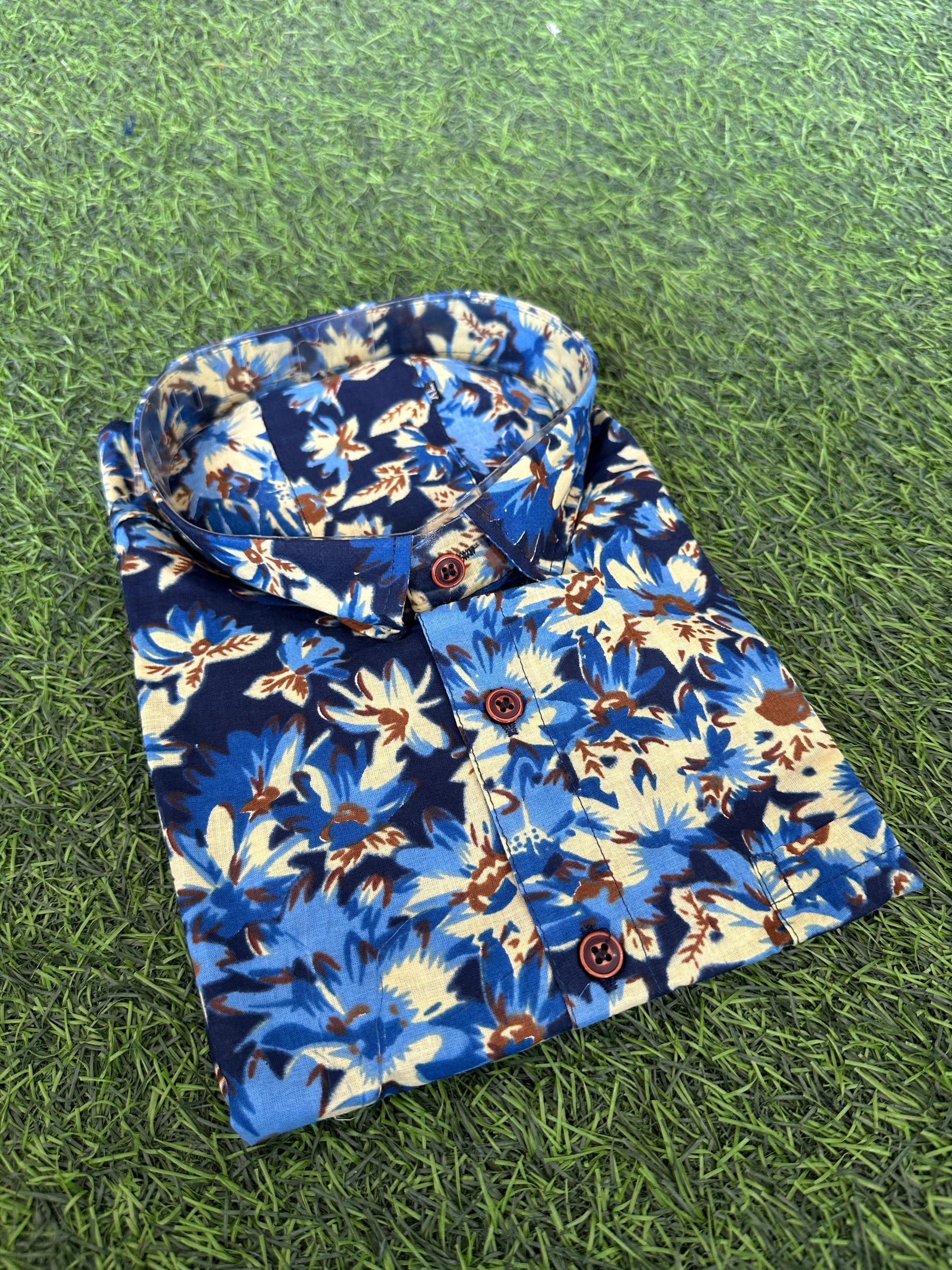 Embrace the vibrant spirit of Jaipur with our Jaipur Bloom Print Half Sleeve Shirt. This eye-catching shirt features a dynamic floral pattern in shades of blue and cream, reminiscent of the city's colorful gardens. Perfect for the warm Rajasthani weather, its breathable fabric ensures all-day comfort while adding a touch of tropical flair to your casual ensemble. Ideal for outings, casual gatherings, or simply enjoying a sunny day.