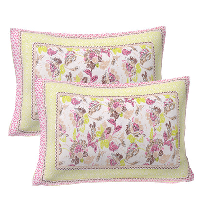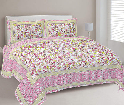 Light Chartreuse Floral Printed Double Bedsheet With 2 Pillow Covers (ADB1455)