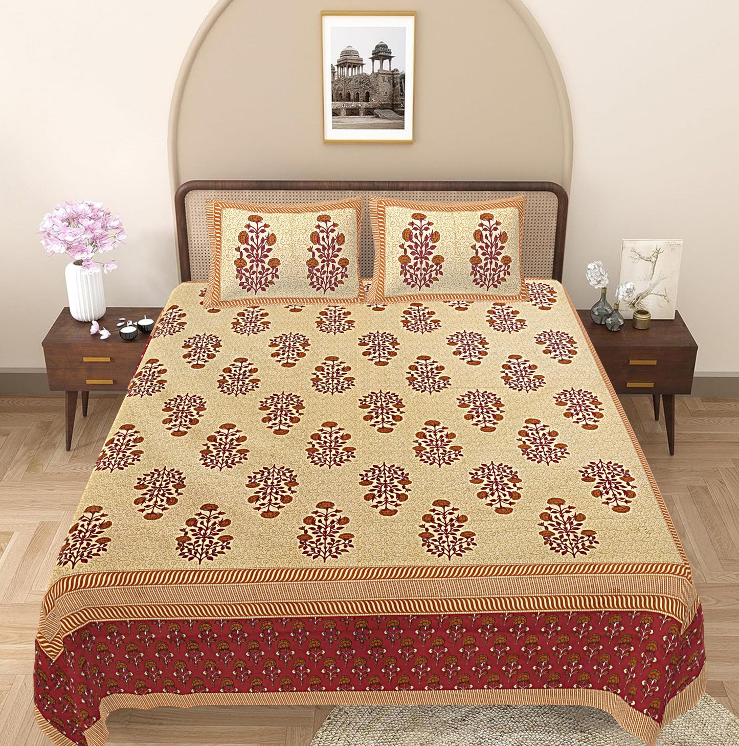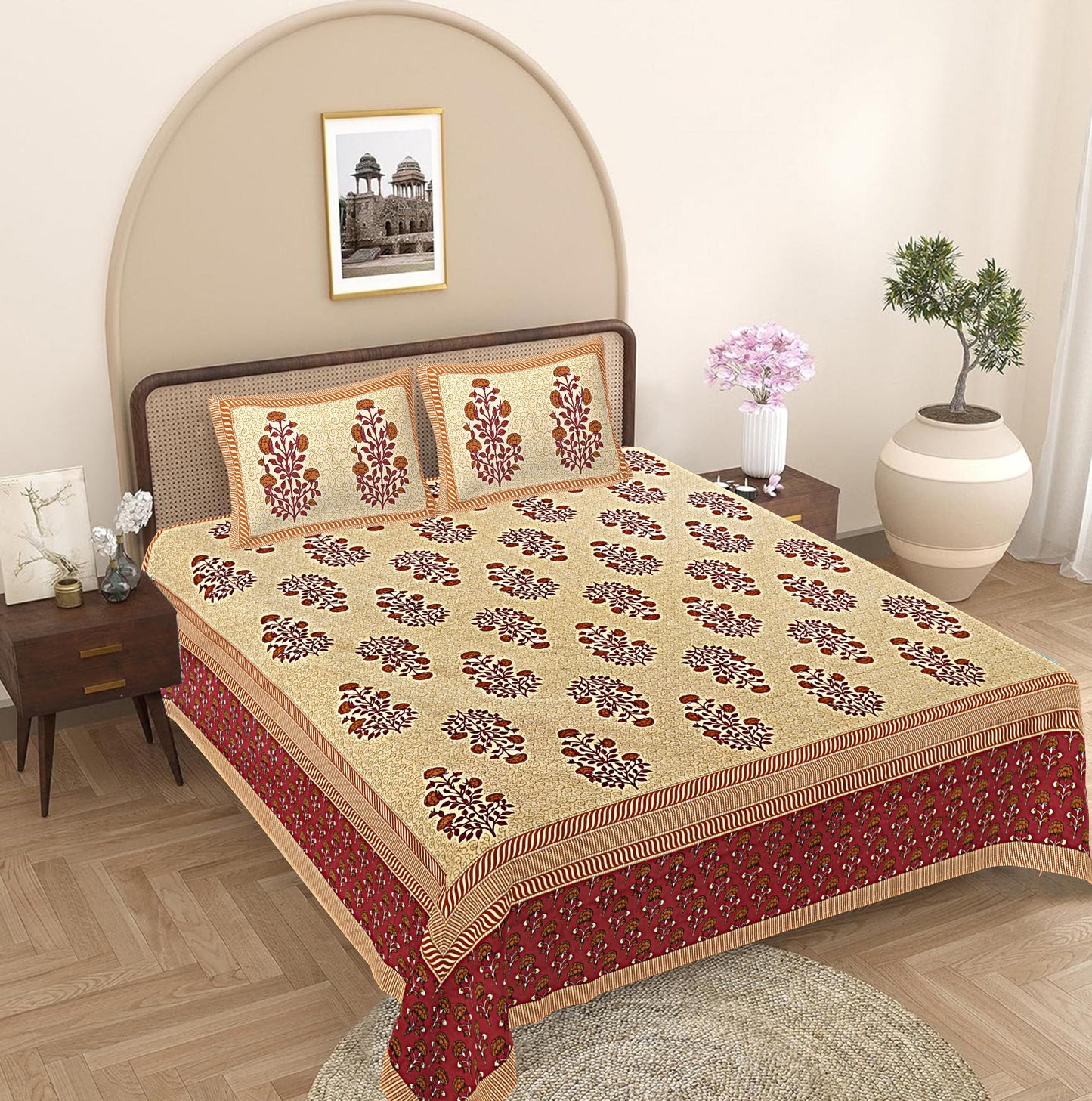 Maroon Floral 240 TC Cotton 1 Super King Bedsheet with 2 Pillow Covers (SHKV1080)