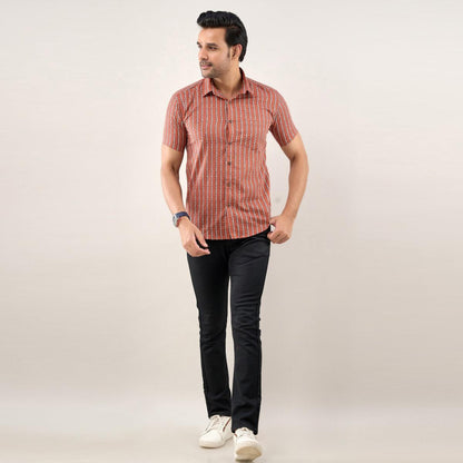 Men Brown Regular Fit Cotton Striped Casual Shirt
