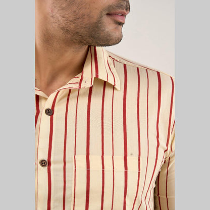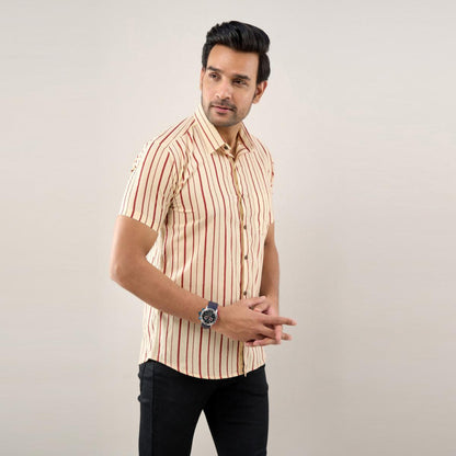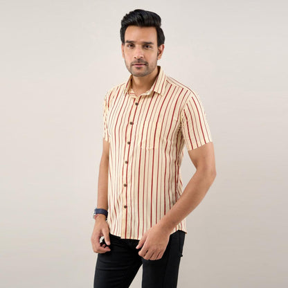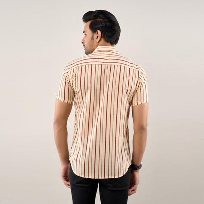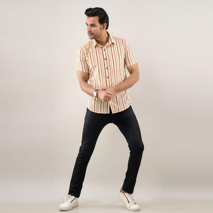 Men Cream Regular Fit Cotton Striped Casual Shirt