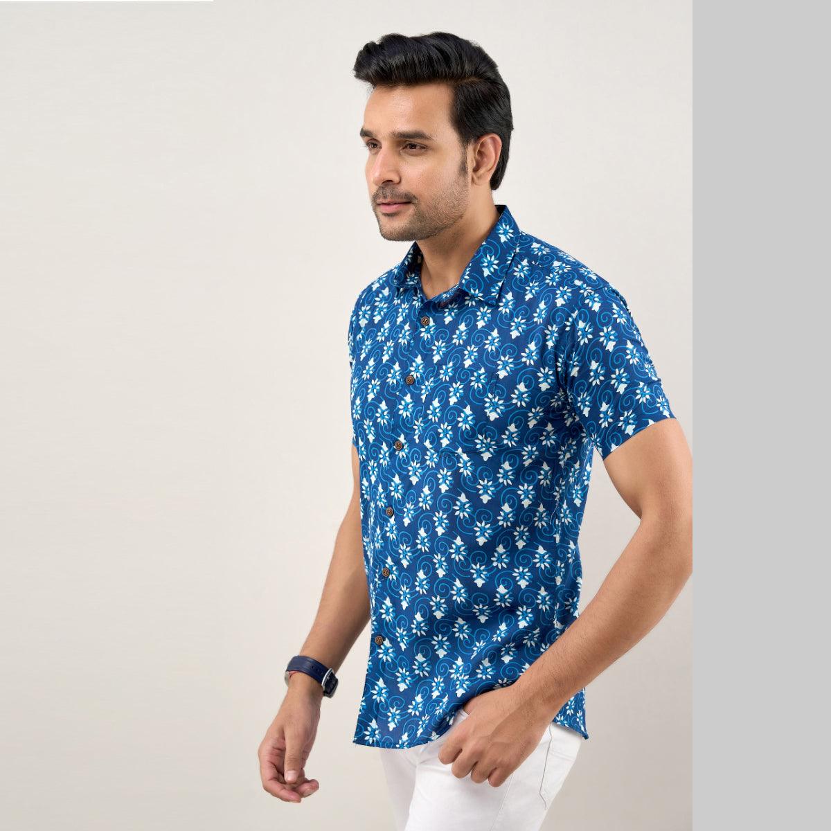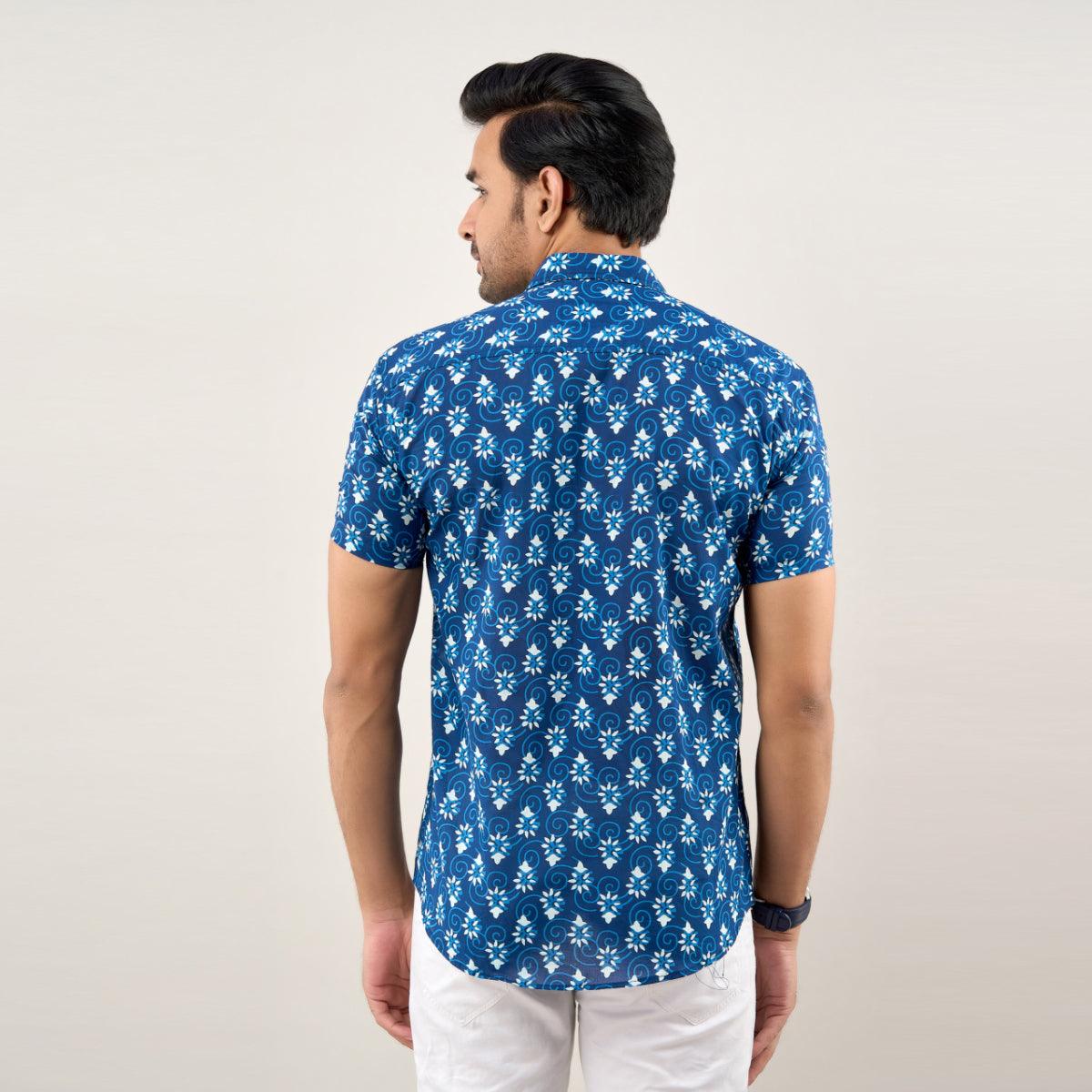 Men Indigo Blue Regular Fit Cotton Printed Casual Shirt (SHKN1036)