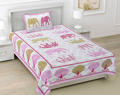 This Cotton Jaipuri Print Single Bedsheet brings a touch of Rajasthan's rich cultural heritage to your bedroom, offering comfort, style, and a unique traditional look.