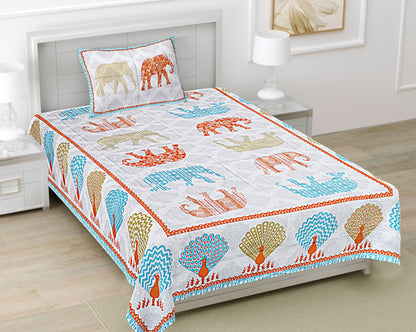 This Cotton Jaipuri Print Single Bedsheet brings a touch of Rajasthan's rich cultural heritage to your bedroom, offering comfort, style, and a unique traditional look.