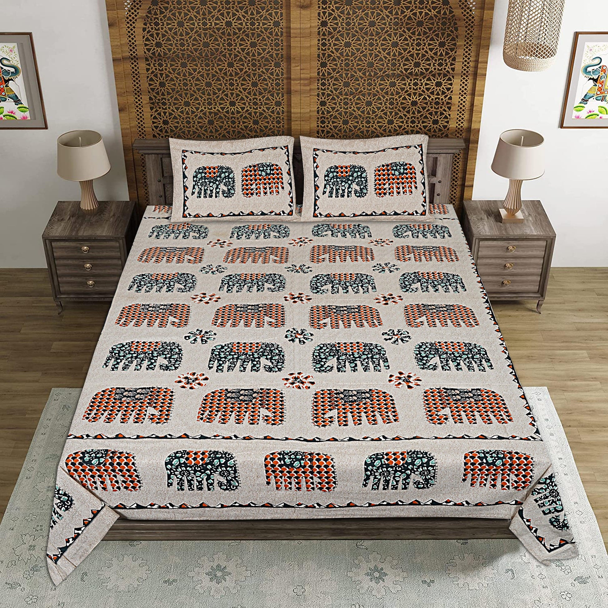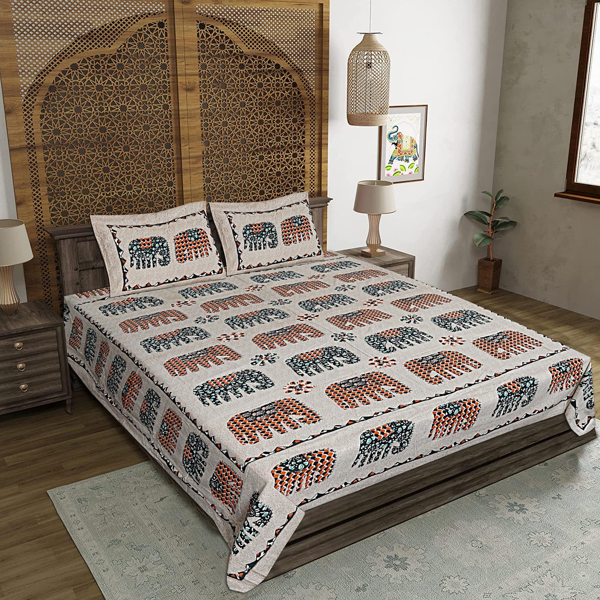 Drape your bed with our amazing range of bed sheets that is sure to lend an amazing look to your bedroom with Jaipuri King Size Bedsheet with Pillow Covers. The exquisite range of double bed sheet with two pillow covers in lovely colors and fascinating designs will instantly lift up your mood.