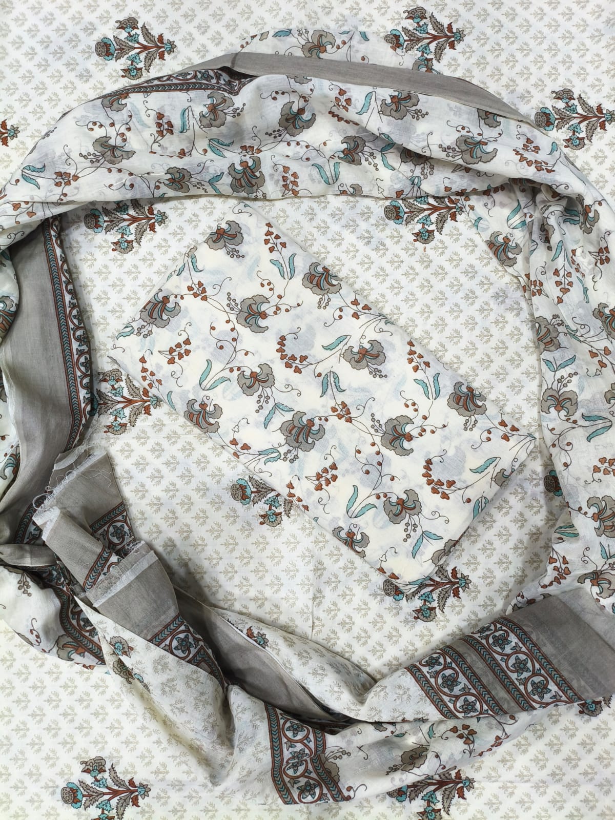 Off White Printed Pure Cotton Unstitched Dress Material (SHKS1193)