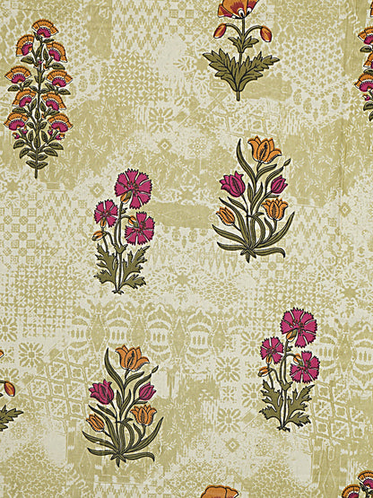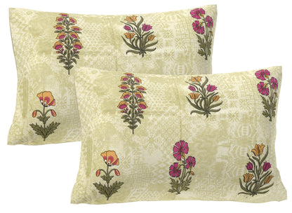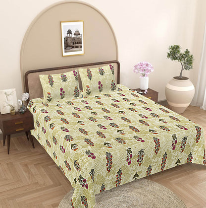 Olive Green Floral 240 TC Cotton 1 Super King Bedsheet with 2 Pillow Covers (SHKV1077)
