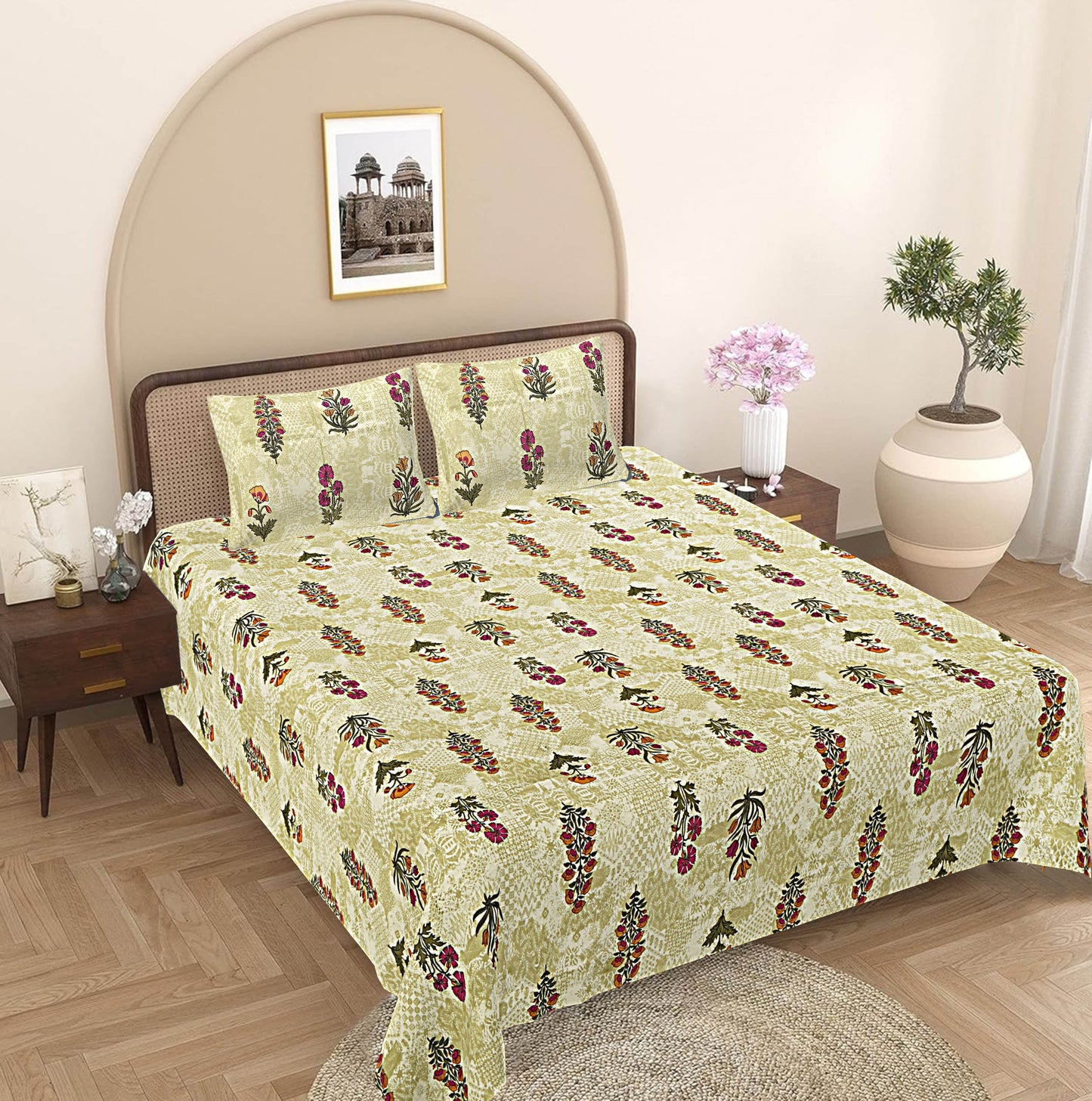 Set Content: 1 Double Bed Sheet, 2 Pillow Covers