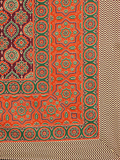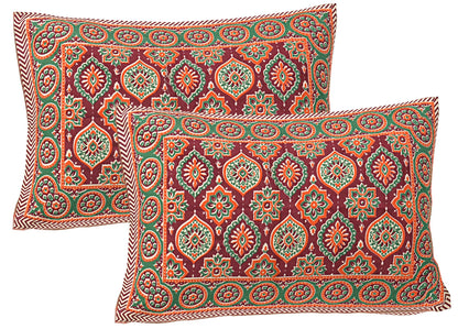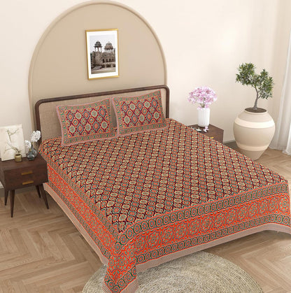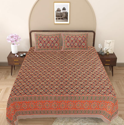 Orange Floral 240 TC Cotton 1 Super King Bedsheet with 2 Pillow Covers (SHKV1085)