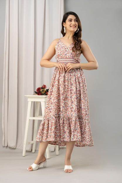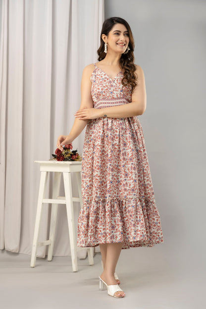 Turn heads this season in this effortlessly stylish dress by FrionKandy. Team this floral peach piece with a pair of heels or gladiators and a statement sling bag for a perfect brunch look.
