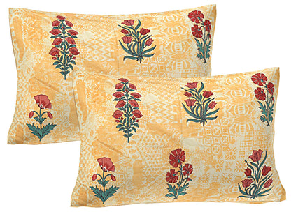 Peach & Red Floral 240 TC Cotton 1 Super King Bedsheet with 2 Pillow Covers (SHKV1078)