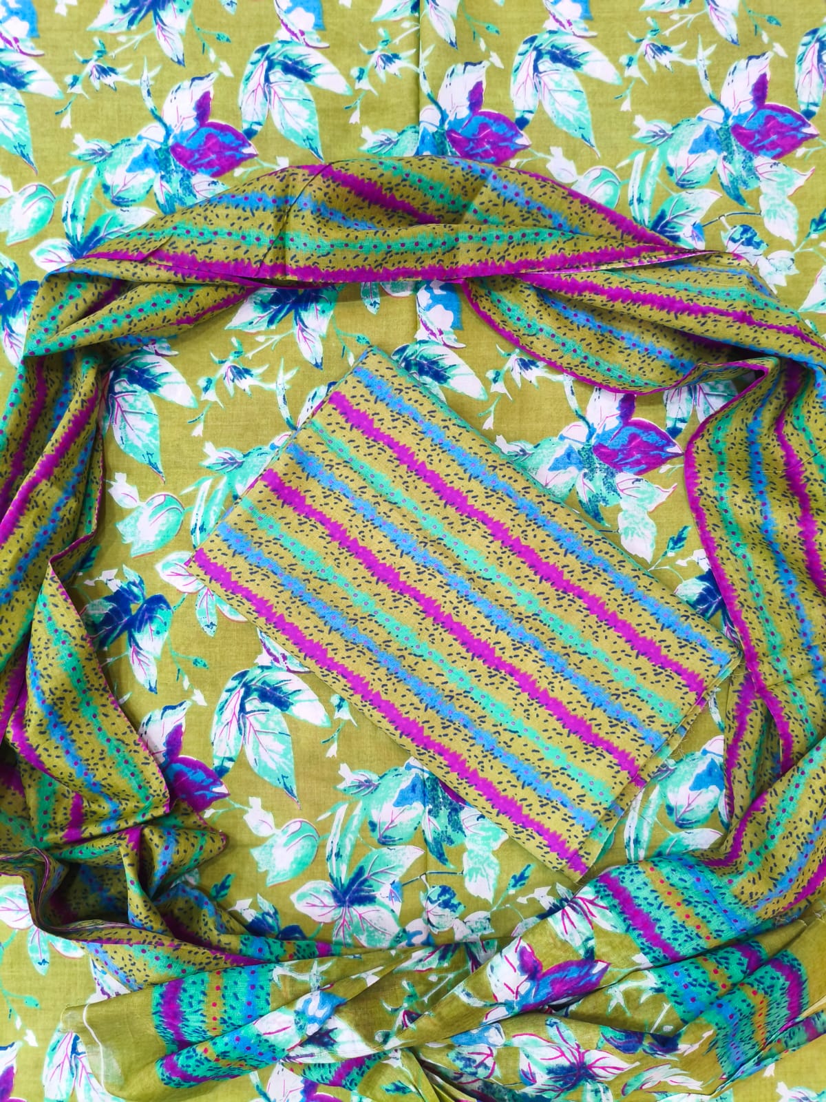 Pickle Green Un stitched salwar suit in pure cotton fabric