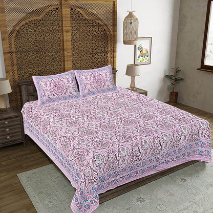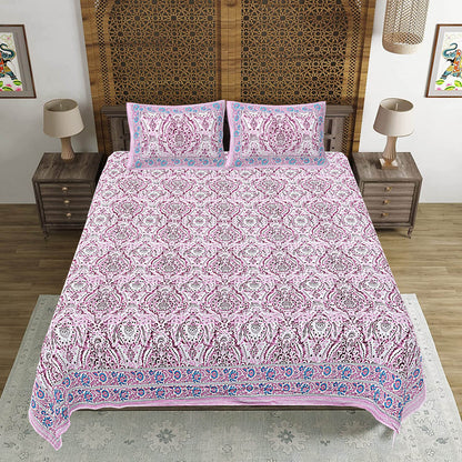 Pink Abstract Print 240 TC Cotton Double Bed Sheet With 2 Pillow Covers (SHKV1051)