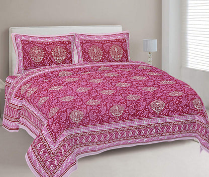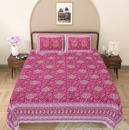Pink Ethnic Printed Double Bedsheet With 2 Pillow Covers (ADB1471)