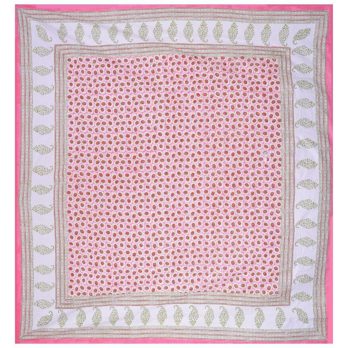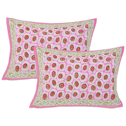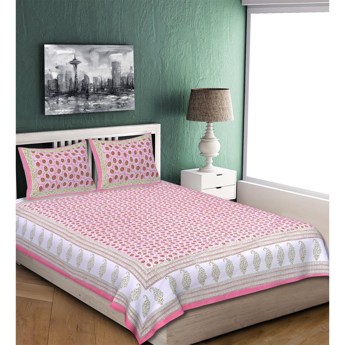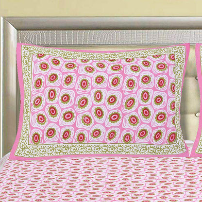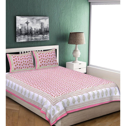 Pink Jaipuri Hand Block Print 240 TC Cotton Super King Size Double Bed Sheet with 2 Pillow Covers (ALDB1005)