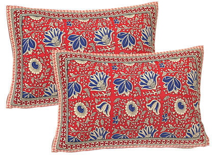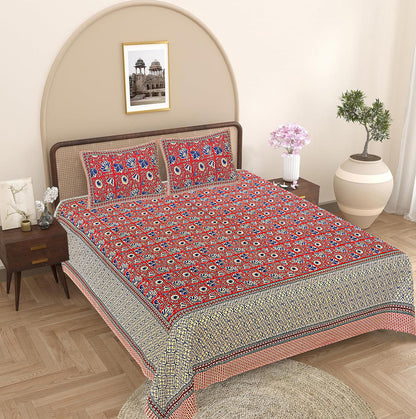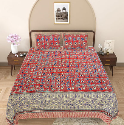 Red Floral 240 TC Cotton 1 Super King Bedsheet with 2 Pillow Covers (SHKV1104)