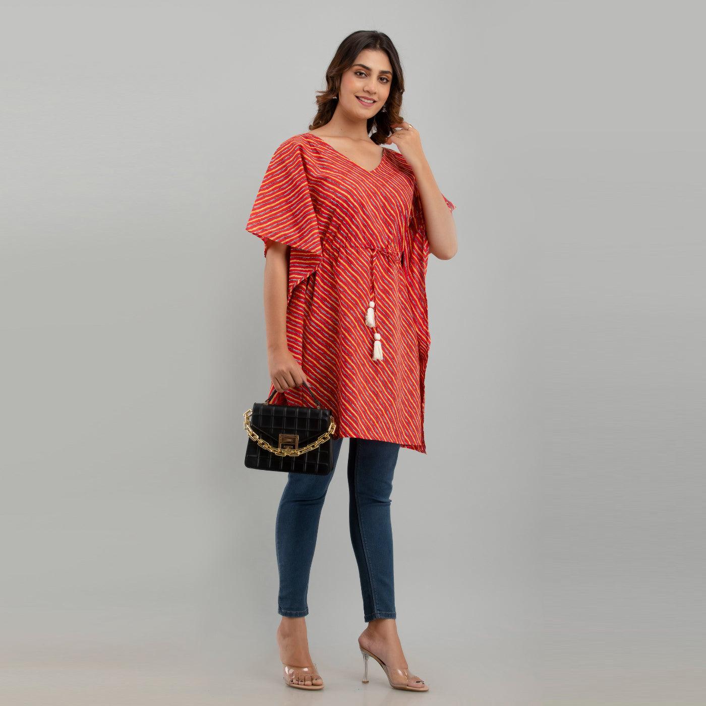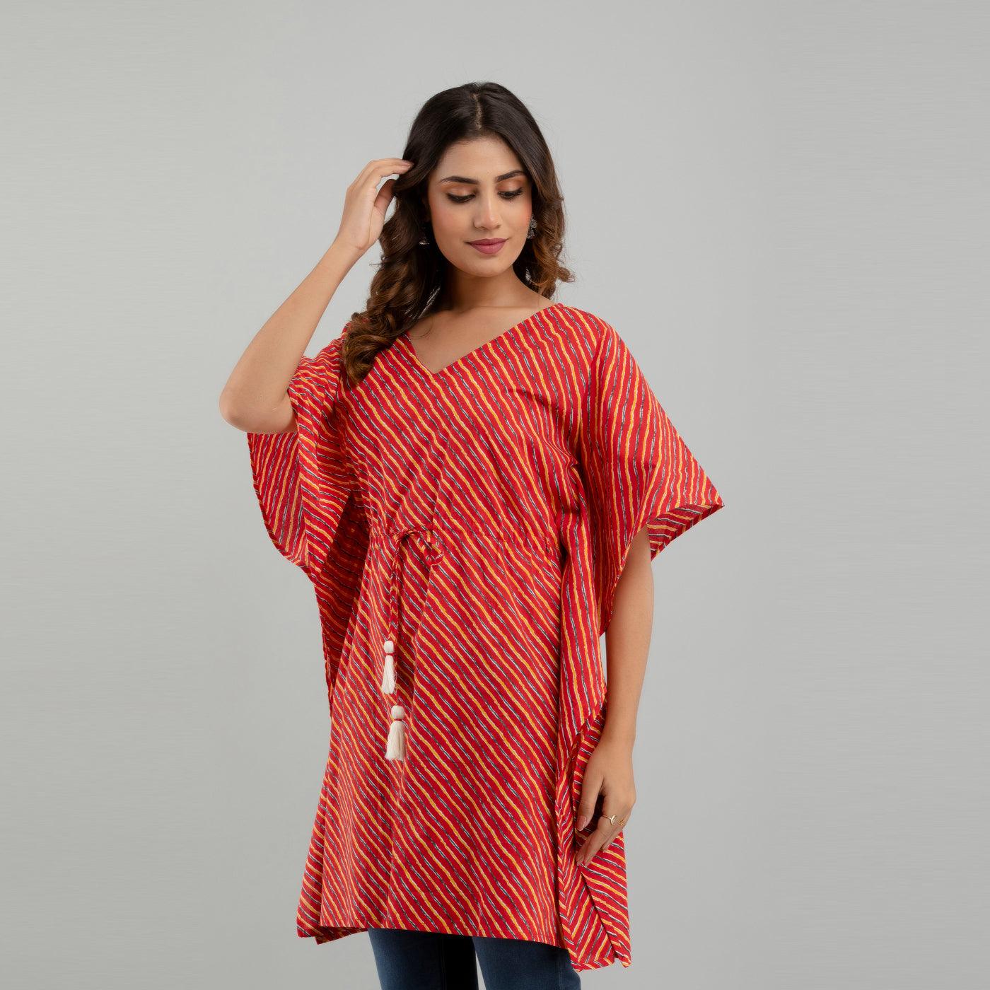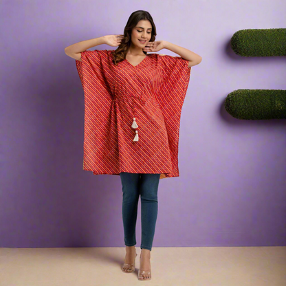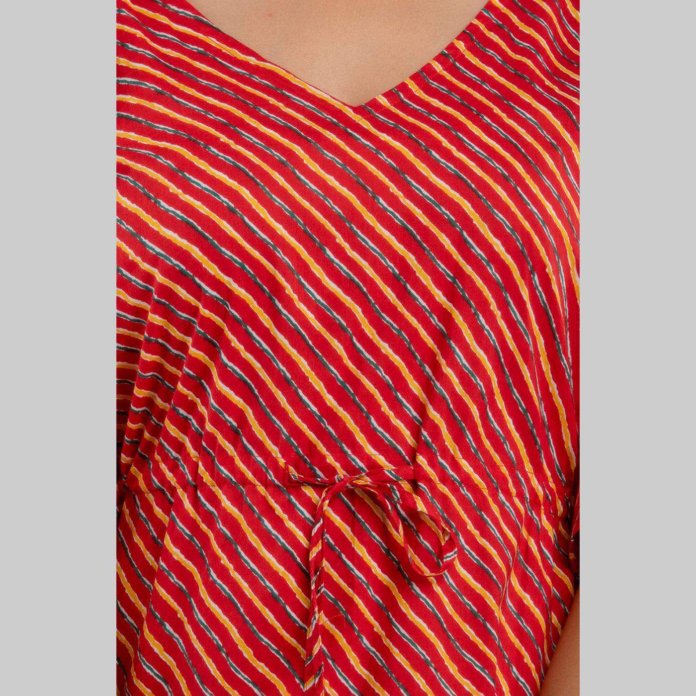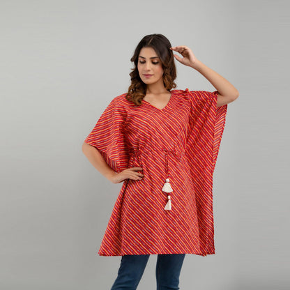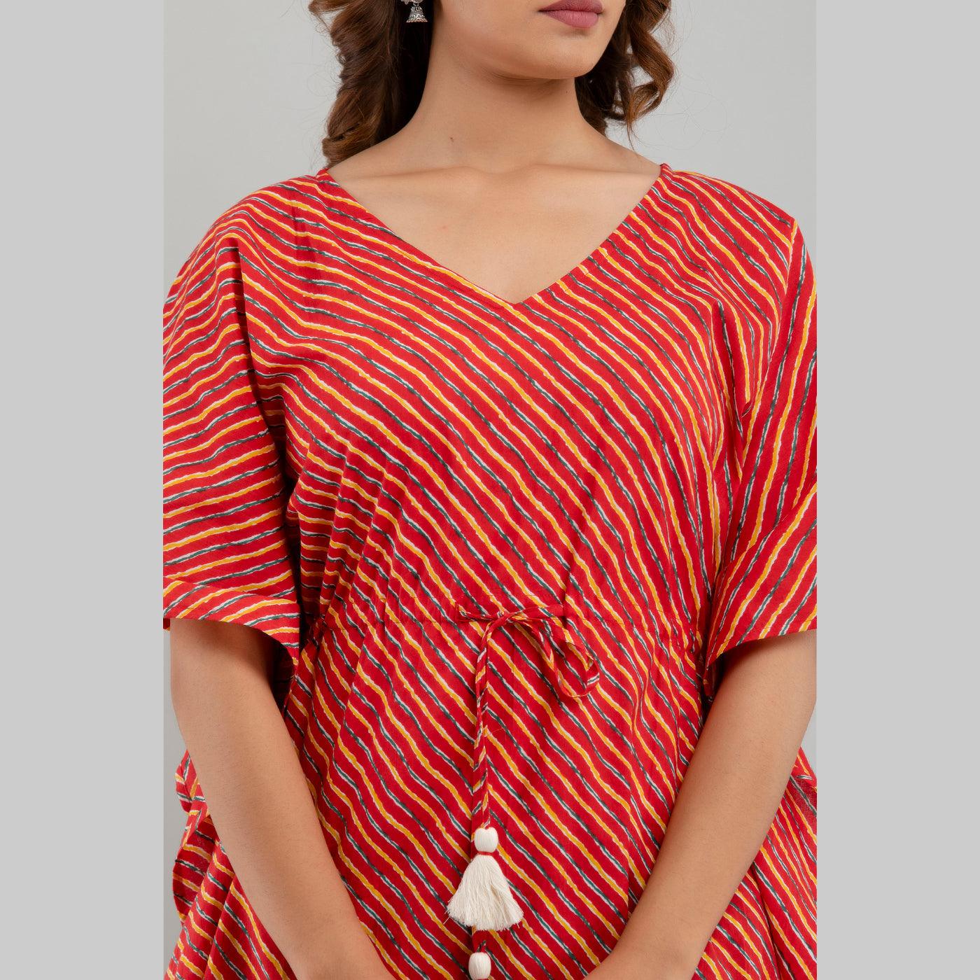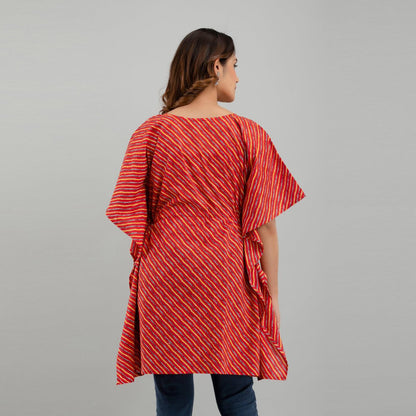 Red Leheriya Print Cotton Kaftan Dress (SHKUP1223)