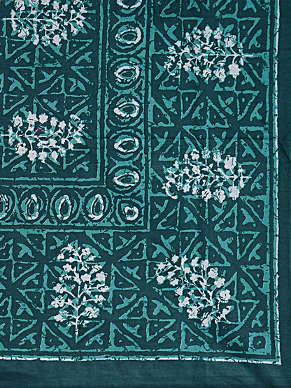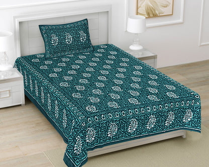 Sea Green Ethnic Motifs 180 TC Cotton Single Bedsheet with 1 Pillow Cover (BSB1122)