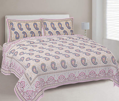 Taffy Pink Paisley Printed Double Bedsheet With 2 Pillow Covers (ADB1451)