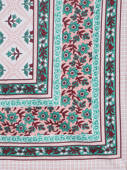 Turquoise Blue Floral 180 TC Cotton Single Bedsheet with 1 Pillow Cover (BSB1092)