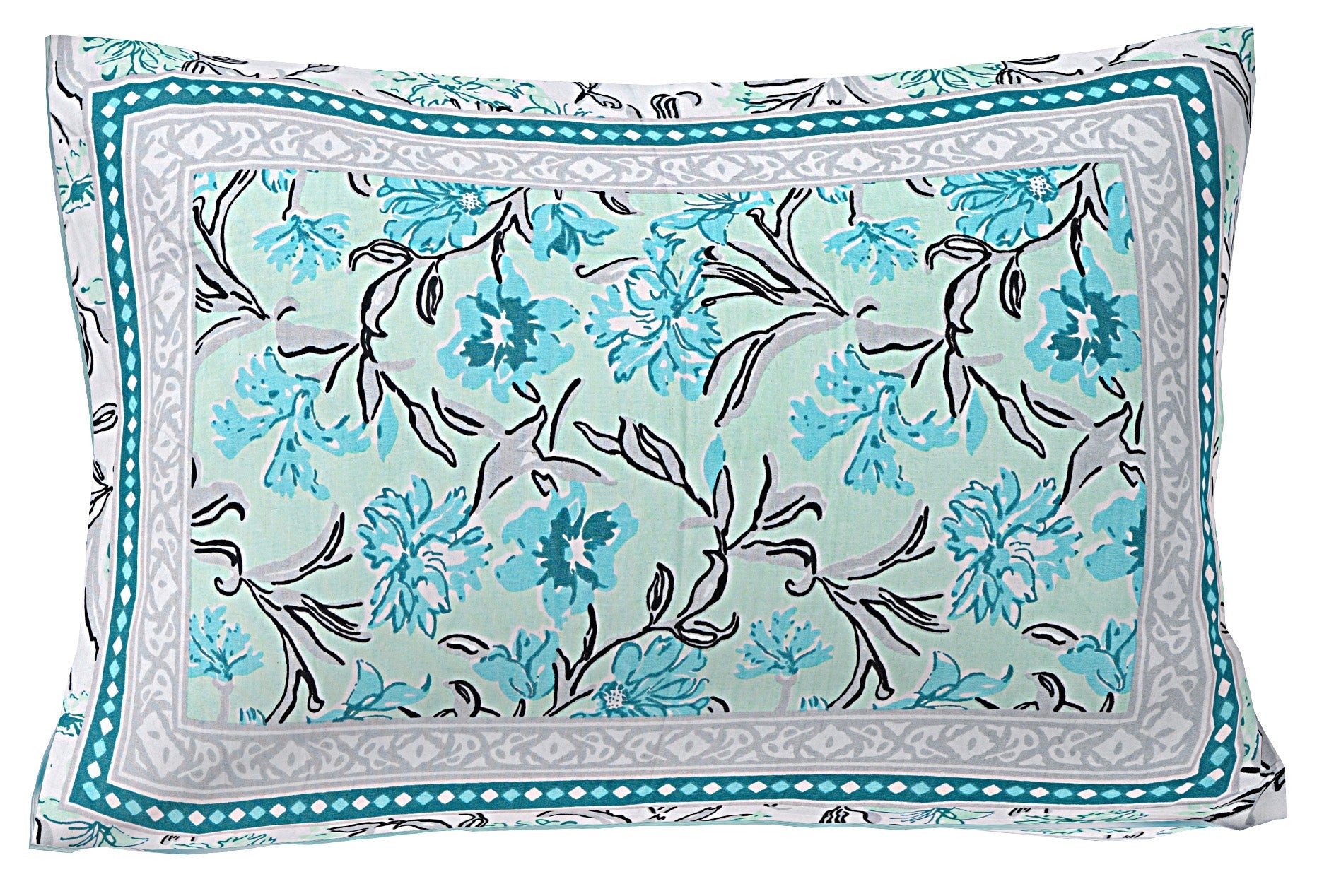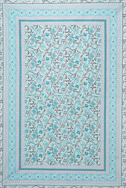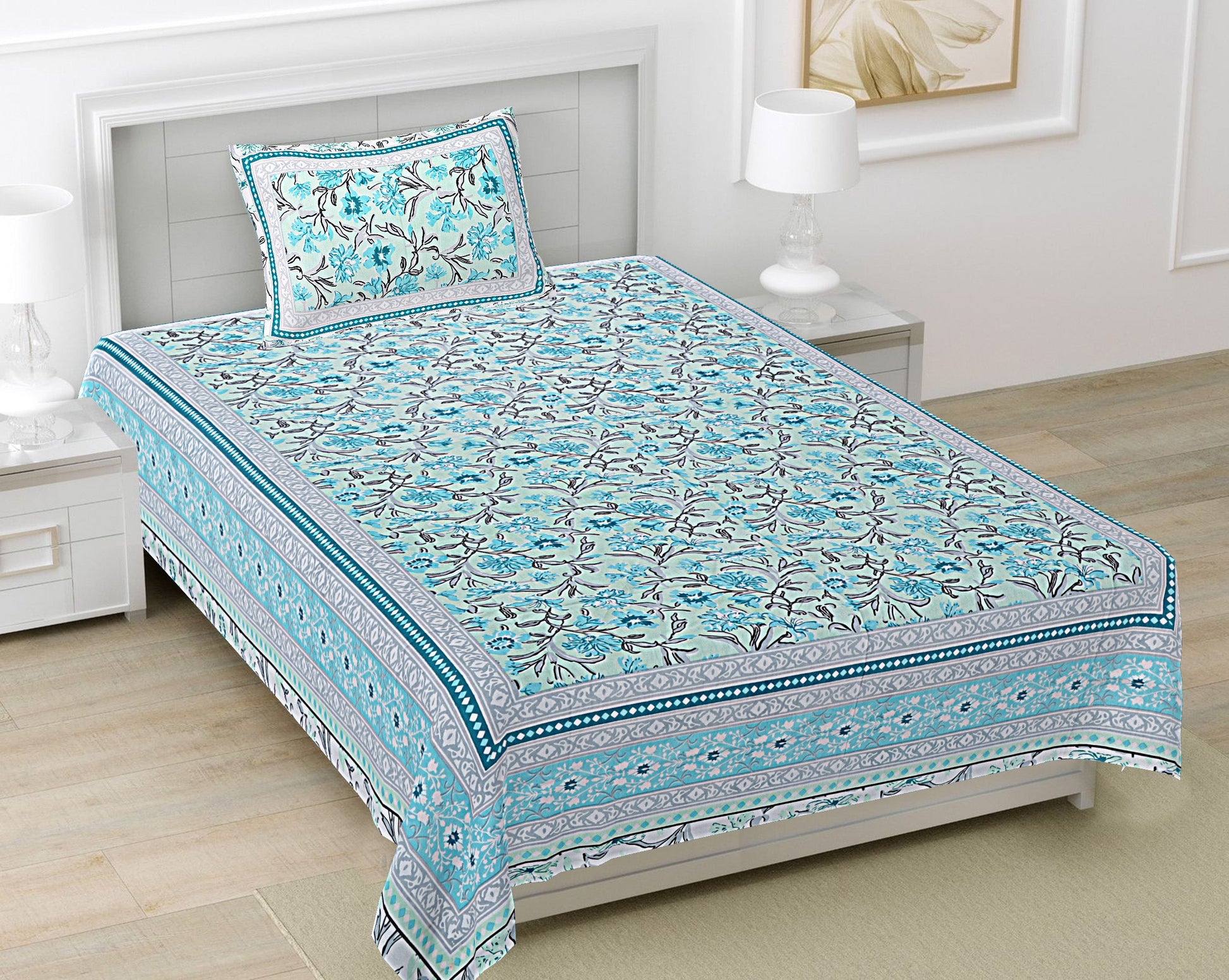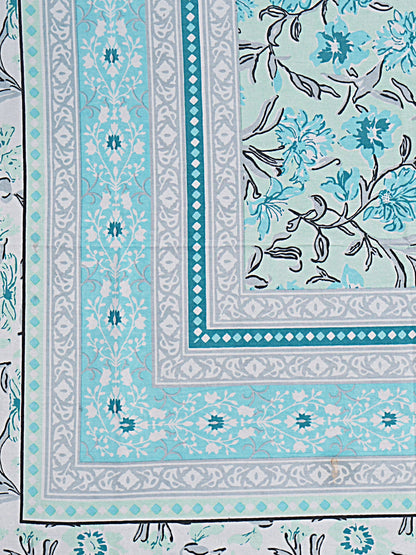Turquoise Blue Floral 180 TC Cotton Single Bedsheet with 1 Pillow Cover (BSB1096)
