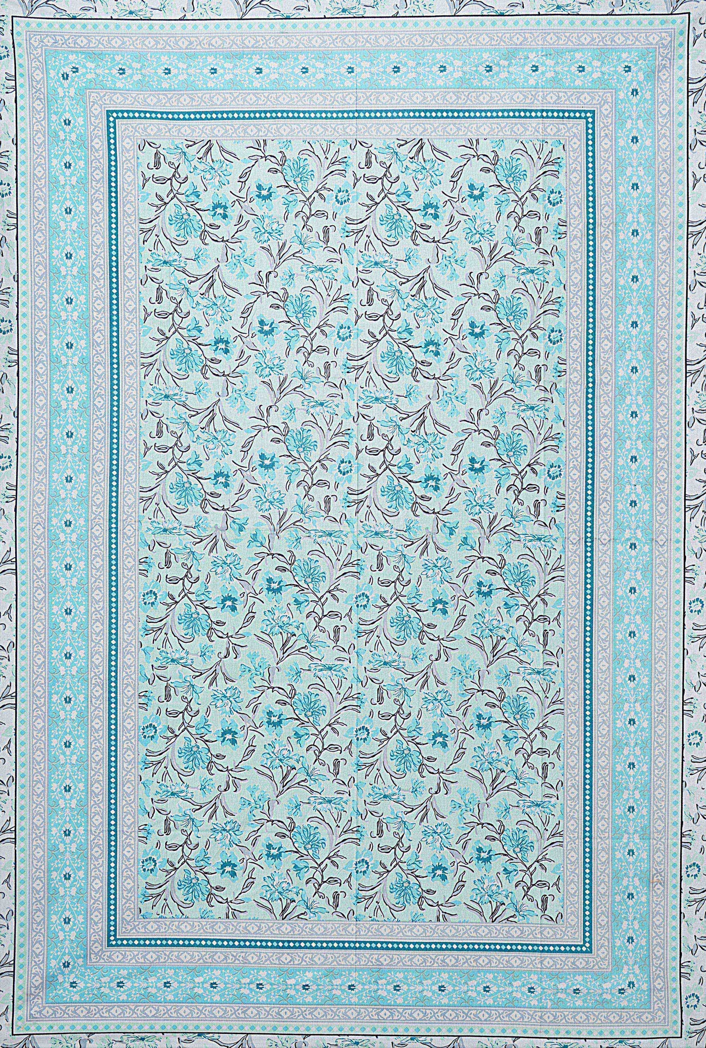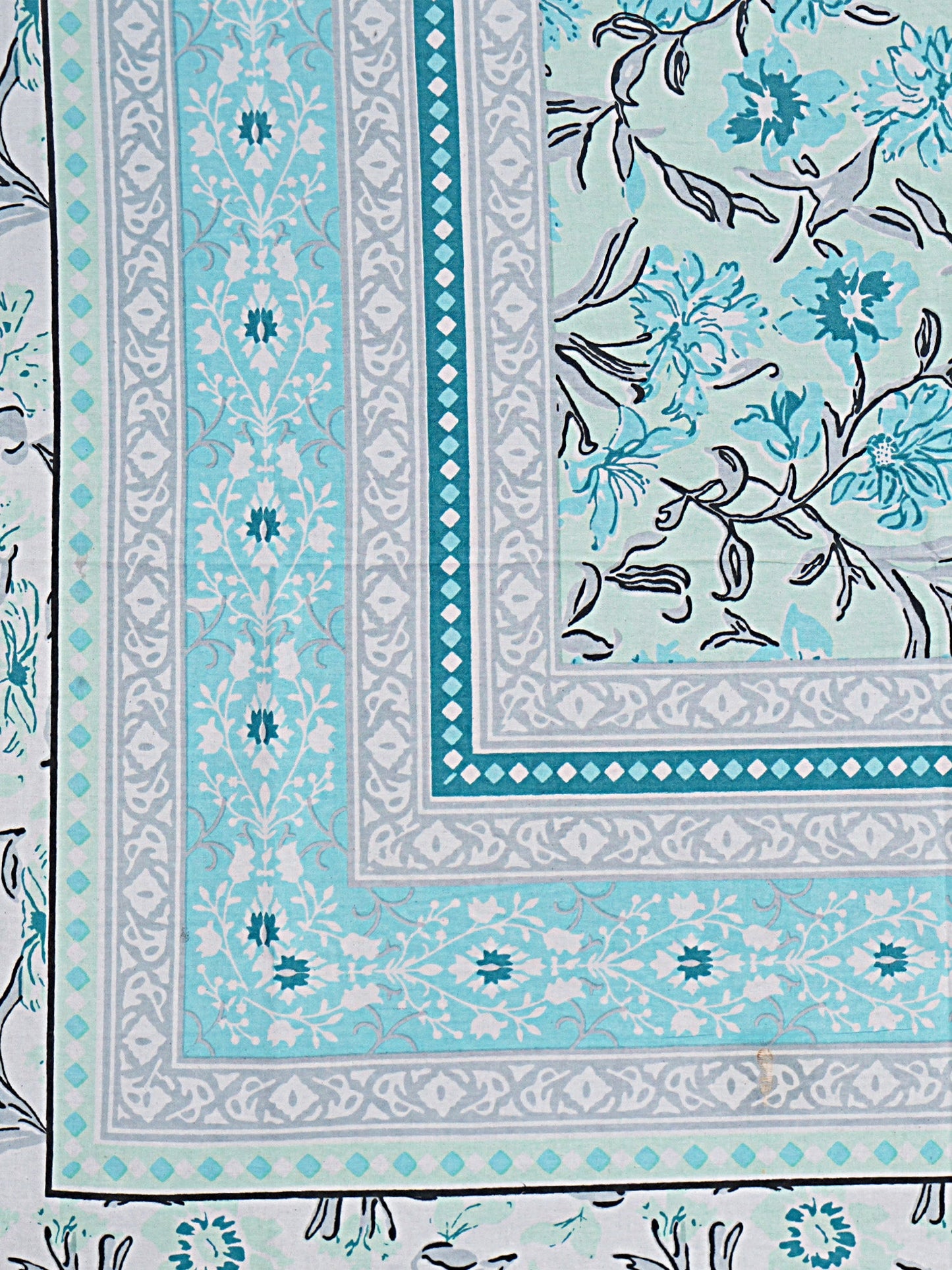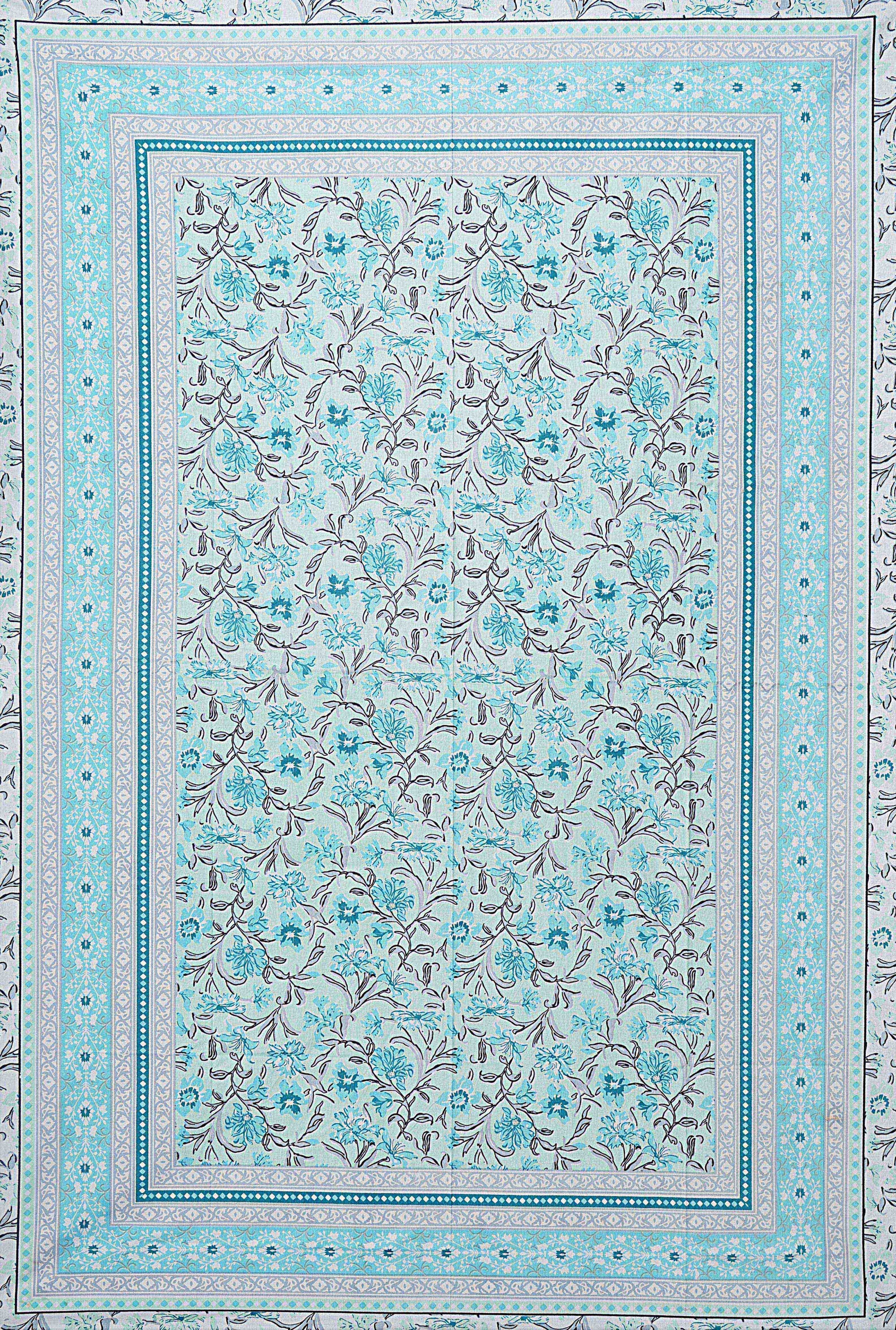 Turquoise Blue Floral 180 TC Cotton Single Bedsheet with 1 Pillow Cover (BSB1096)