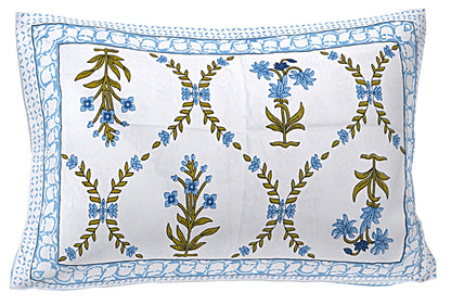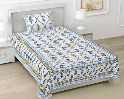 Turquoise Blue Floral 180 TC Cotton Single Bedsheet with 1 Pillow Cover (BSB1104)